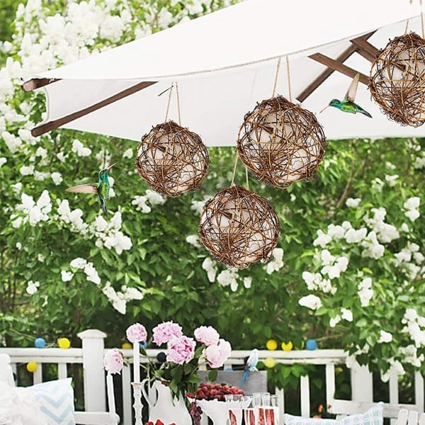 Bird nests are hand-woven from natural rattan for safety and durability. The rattan of the bird's nest holds the nesting material well even in the wind and rain.