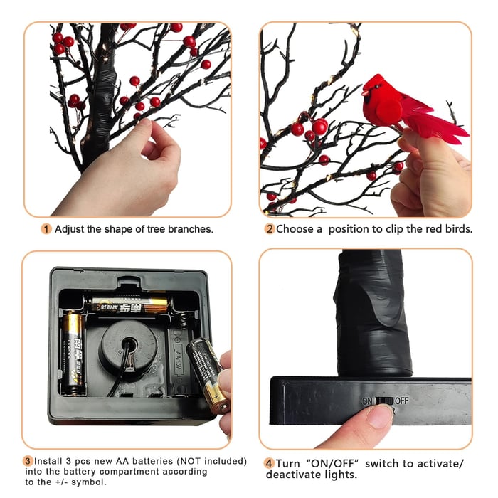 🌟Create a warm holiday atmosphere with this LED red fruit and red bird tree light!