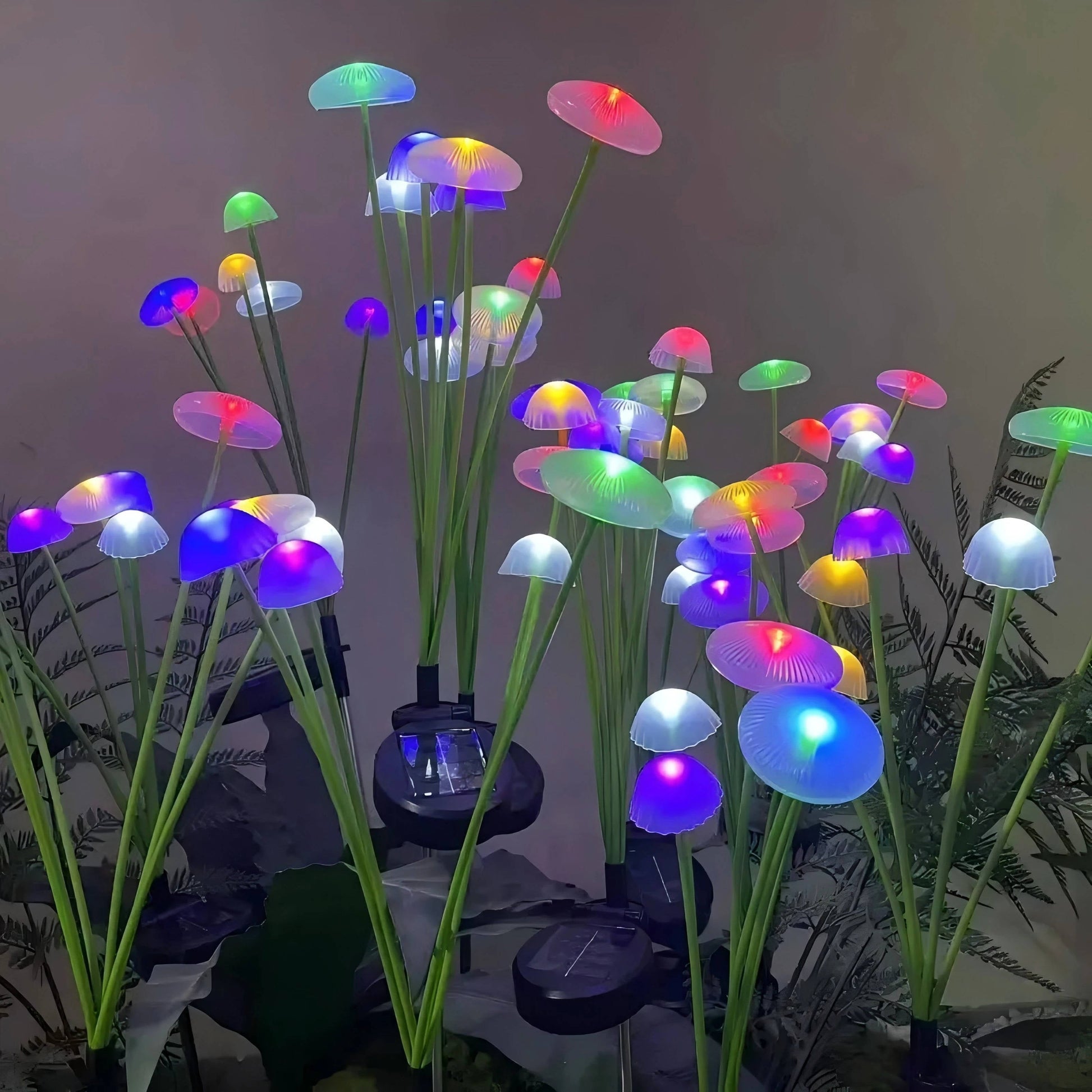 These lights soak up the sun during the day and kick on by themselves when it gets dark. Inside each one, 10 bright LEDs create this awesome color show all night long. When the wind blows, they dance and sway in a really cool way.