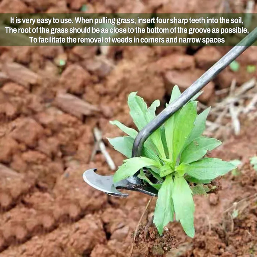 Make garden cleanup easier with this weed tool remover designed to pull stubborn weeds while you stand comfortably. Place the curved head between plants or around stones, let the four steel teeth grip beneath the weed, then pull to lift roots out cleanly. Built for repeated use with a smooth surface that resists soil sticking, it supports efficient yard work across beds, planters, and patios.